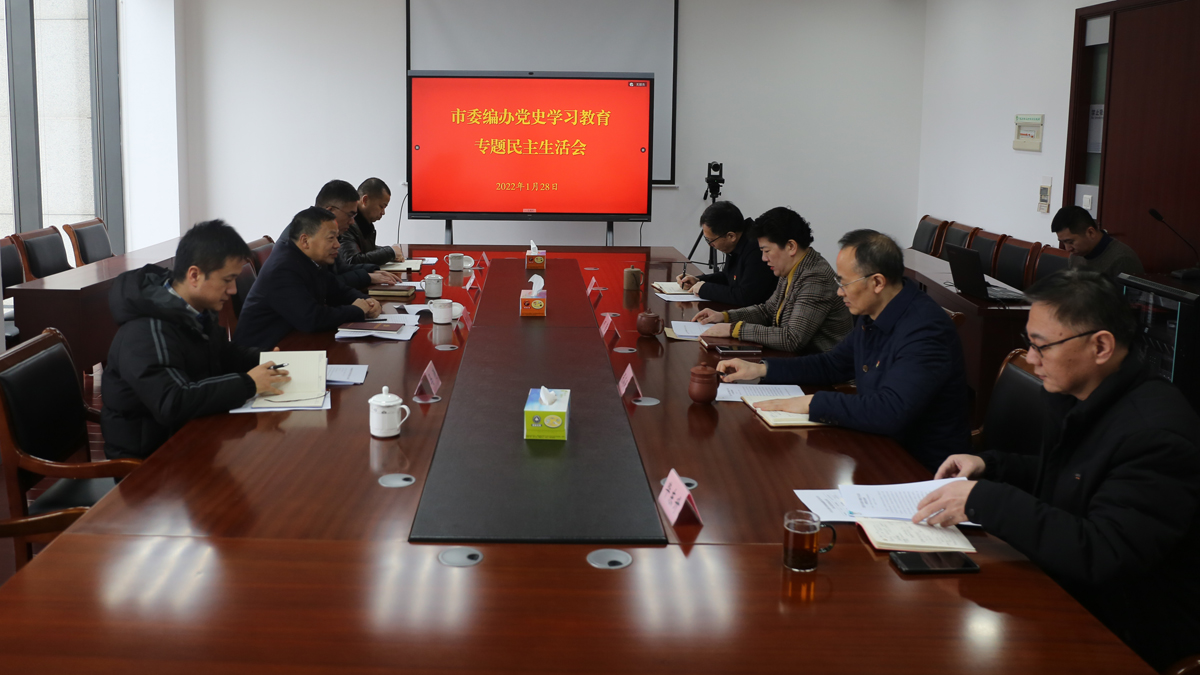 1月28日上午,市委编办召开党史学习教育专题民主生活会。市党史学习教育第三巡回指导组副组长杨成富、市纪委监委派驻第三纪检监察组副组长王健等到会指导。市委组织部副部长、编办主任何莹主持会议并代表班子作表态发言,办领导班子成员参加会议。